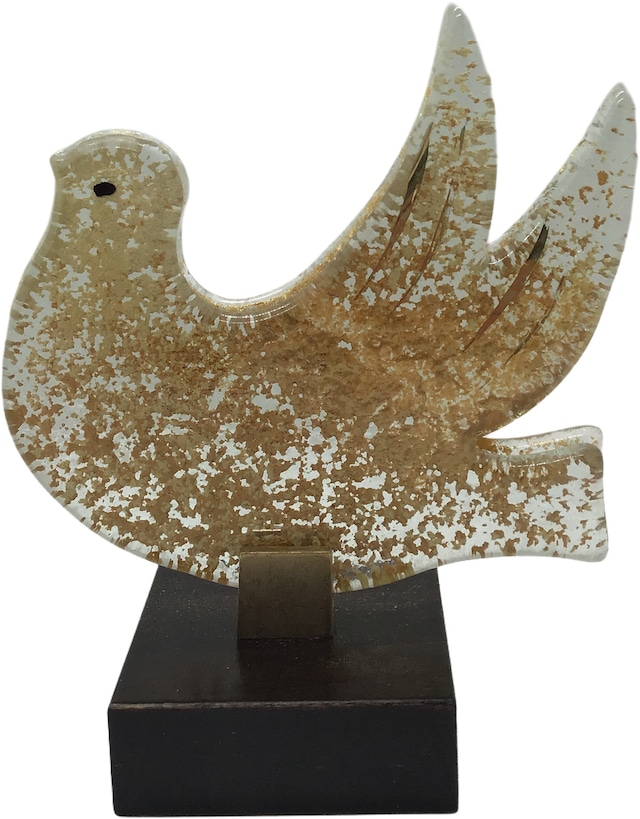 ガラス製ハト(金)木製スタンド付き <Taube gold auf Holzstander> Nr.890196/ベネディクト会 マリアラッハ修道院(ドイツ)