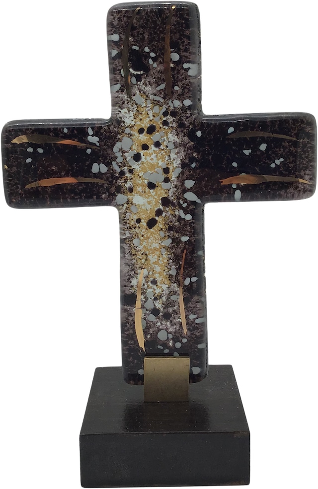 ガラス十字架(黒×金)木製スタンド付き <Kreuz schwarz mit Gold auf Holzstander> Nr.890193/ベネディクト会 マリアラッハ修道院(ドイツ)