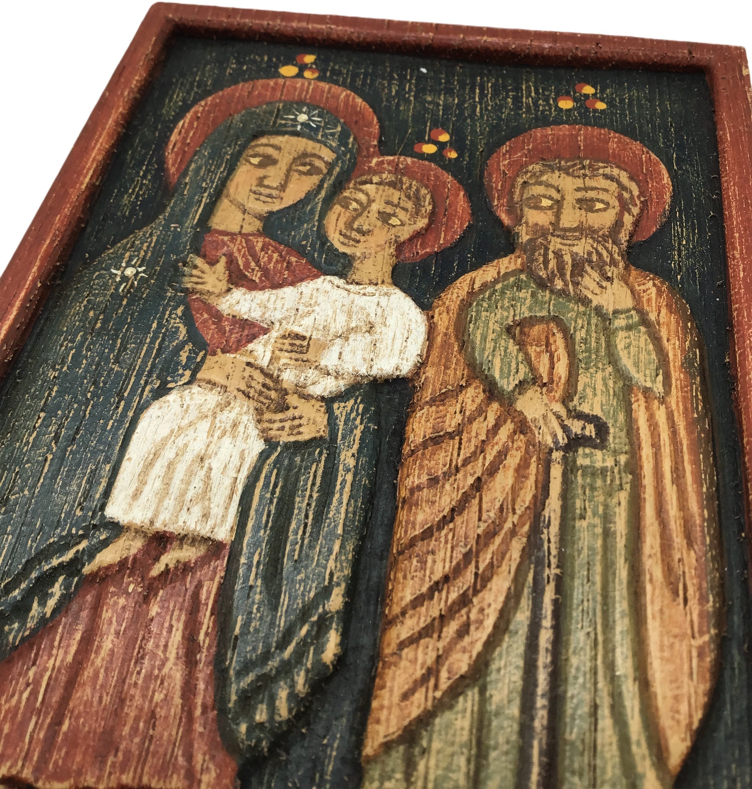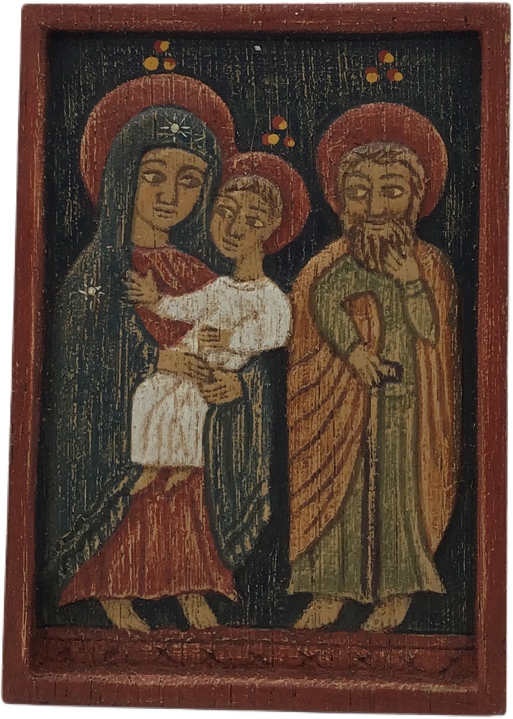 キリスト教を扱った美術で大きなテーマとされる家族の原型です。幼いイエス・キリスト、聖マリア、聖ヨセフの三人をさして聖家族と呼びます。キリスト教において、天においての三位一体は、父と子と聖霊ですが、地上における三位一体は、この聖家族の構成であると言われていす。聖書には、青年期以降のイエスがメインで、三人で暮らす幼少期の記述はあまり出てきません。ですが、美術分野においてはとても重要なテーマとして多く描かれているのです。