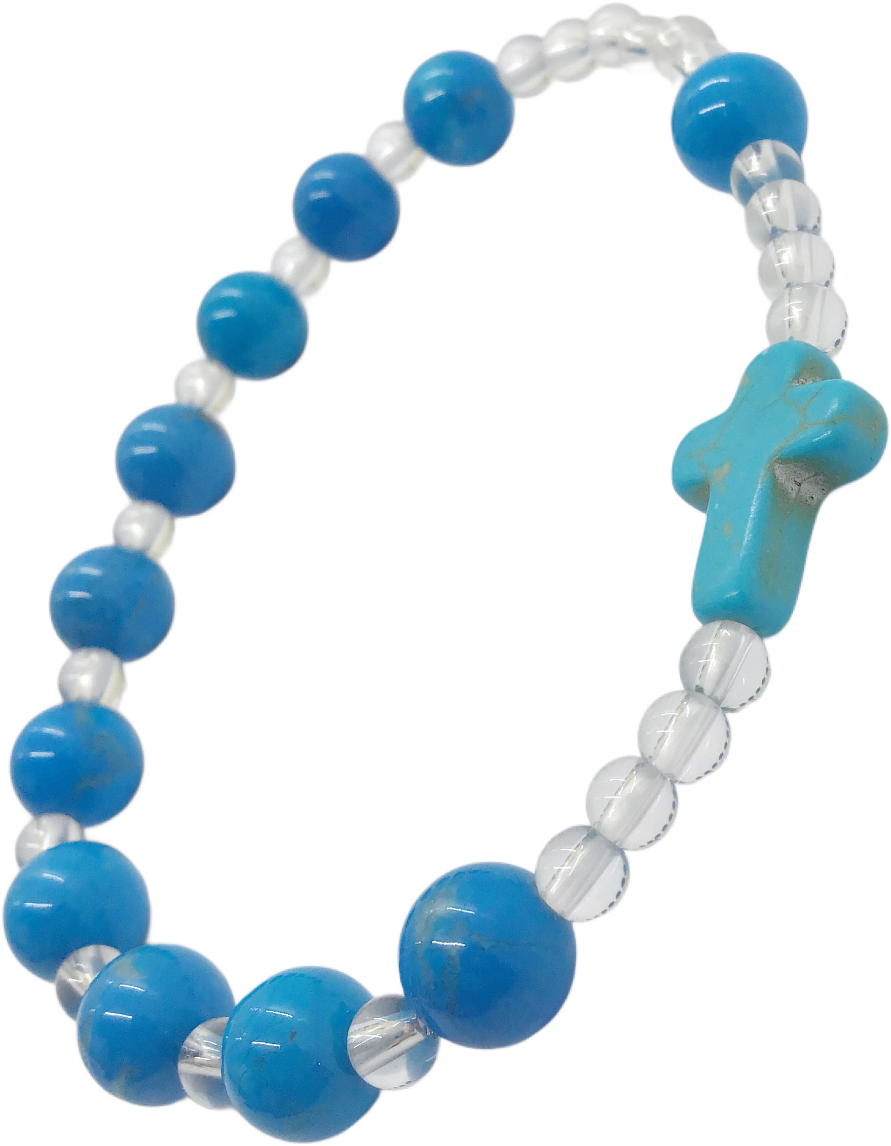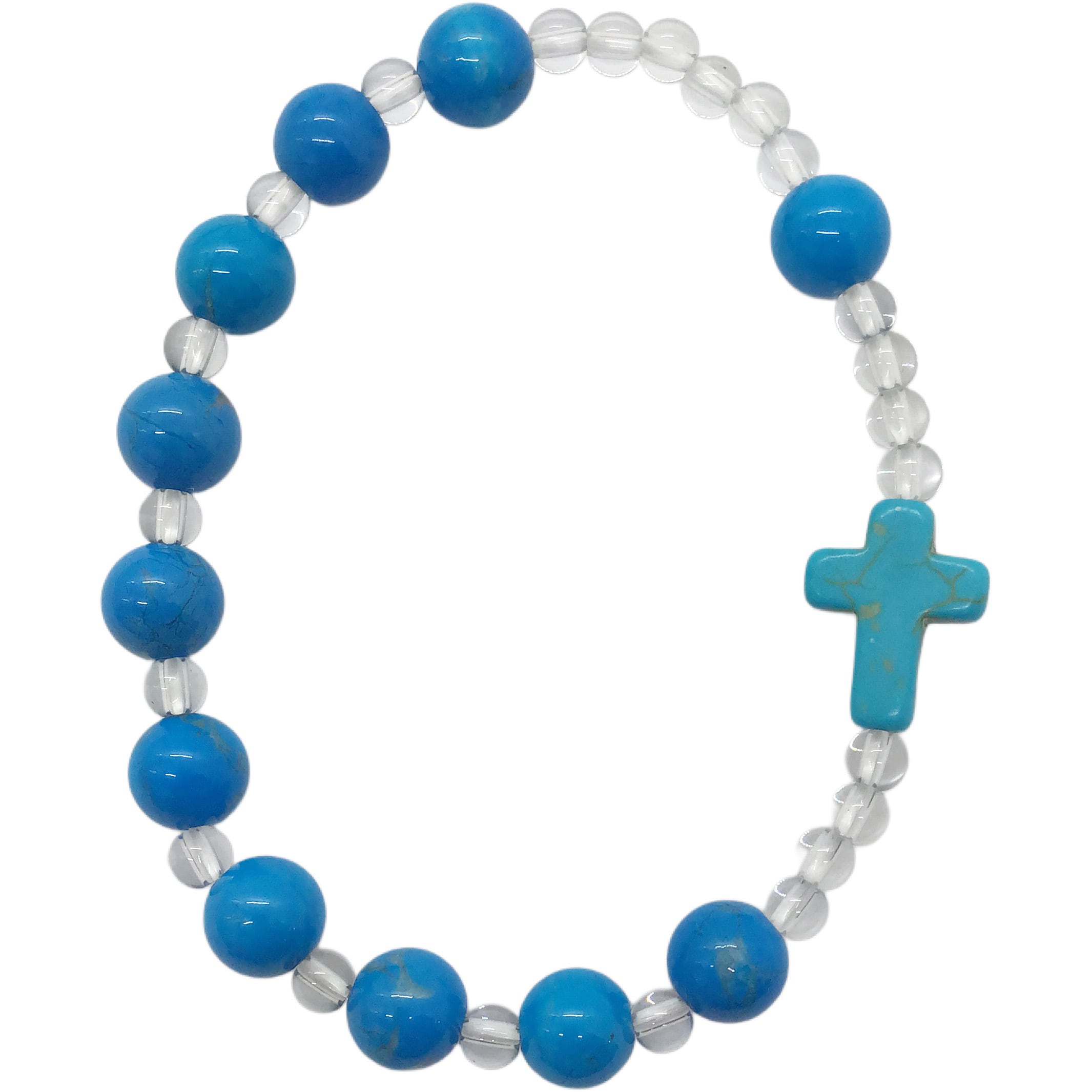 マグネサイト(ターコイズカラー)&ロッククリスタル/練ターコイズ ロザリオブレスレット(16cm)/聖パウロ修道会