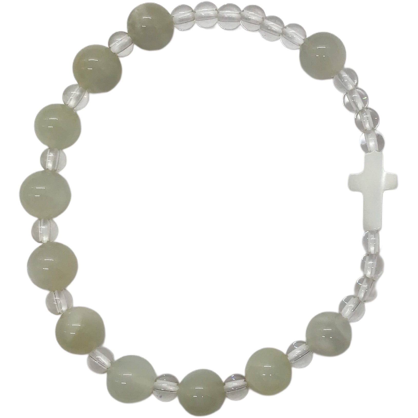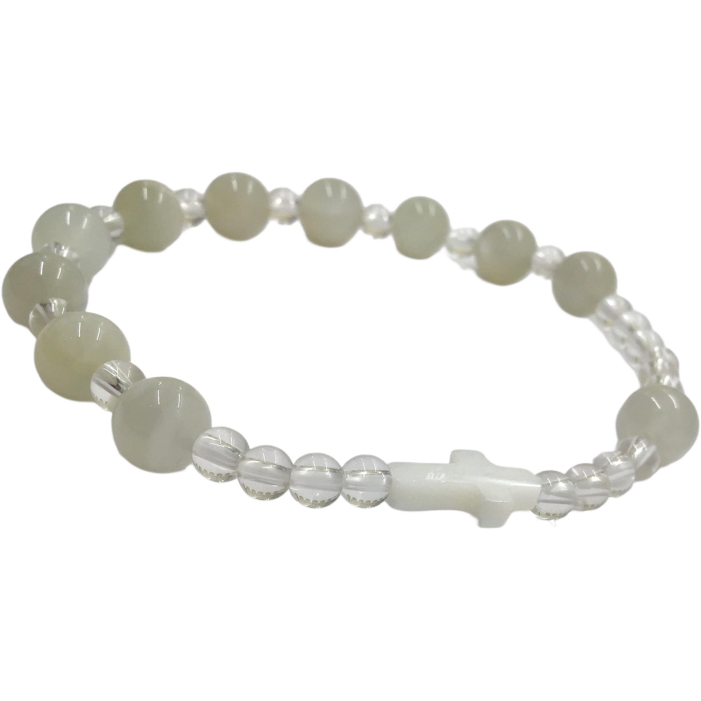 ムーンストーン/ロッククリスタル/マザーパール 手編みロザリオブレスレット/聖パウロ修道会