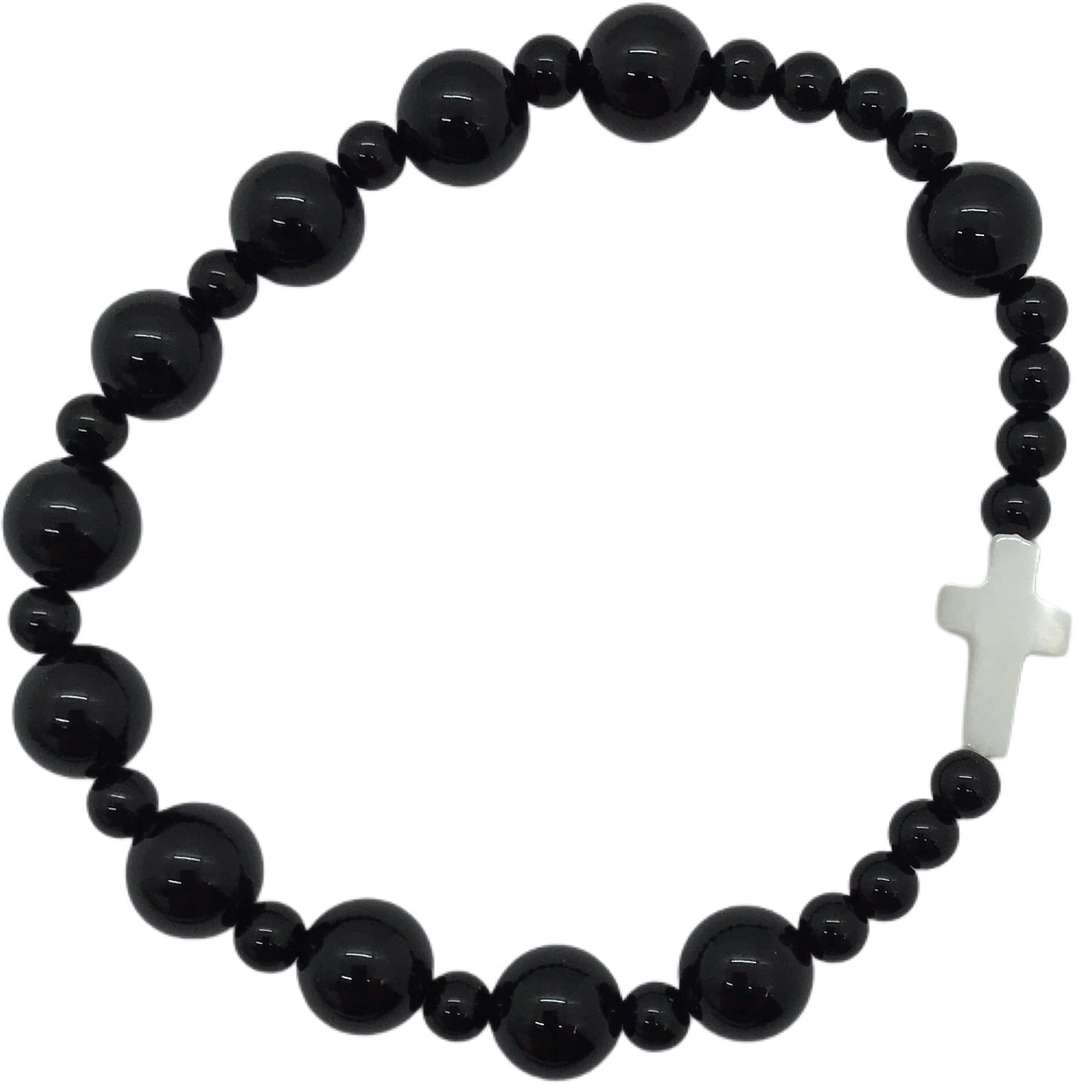 ブラックオニキス マザーパール 手編みロザリオブレスレット/聖パウロ修道会