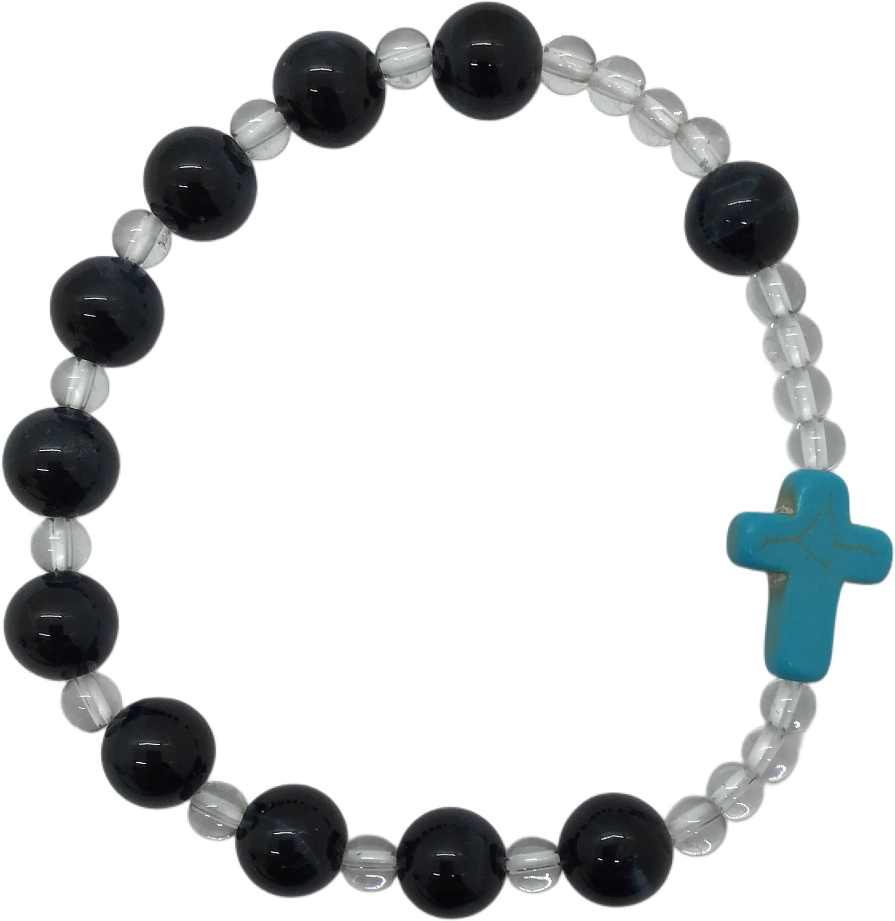 ファルコンアイ、ロッククリスタル、練ターコイズ 16cm 手編みロザリオブレスレット/聖パウロ修道会