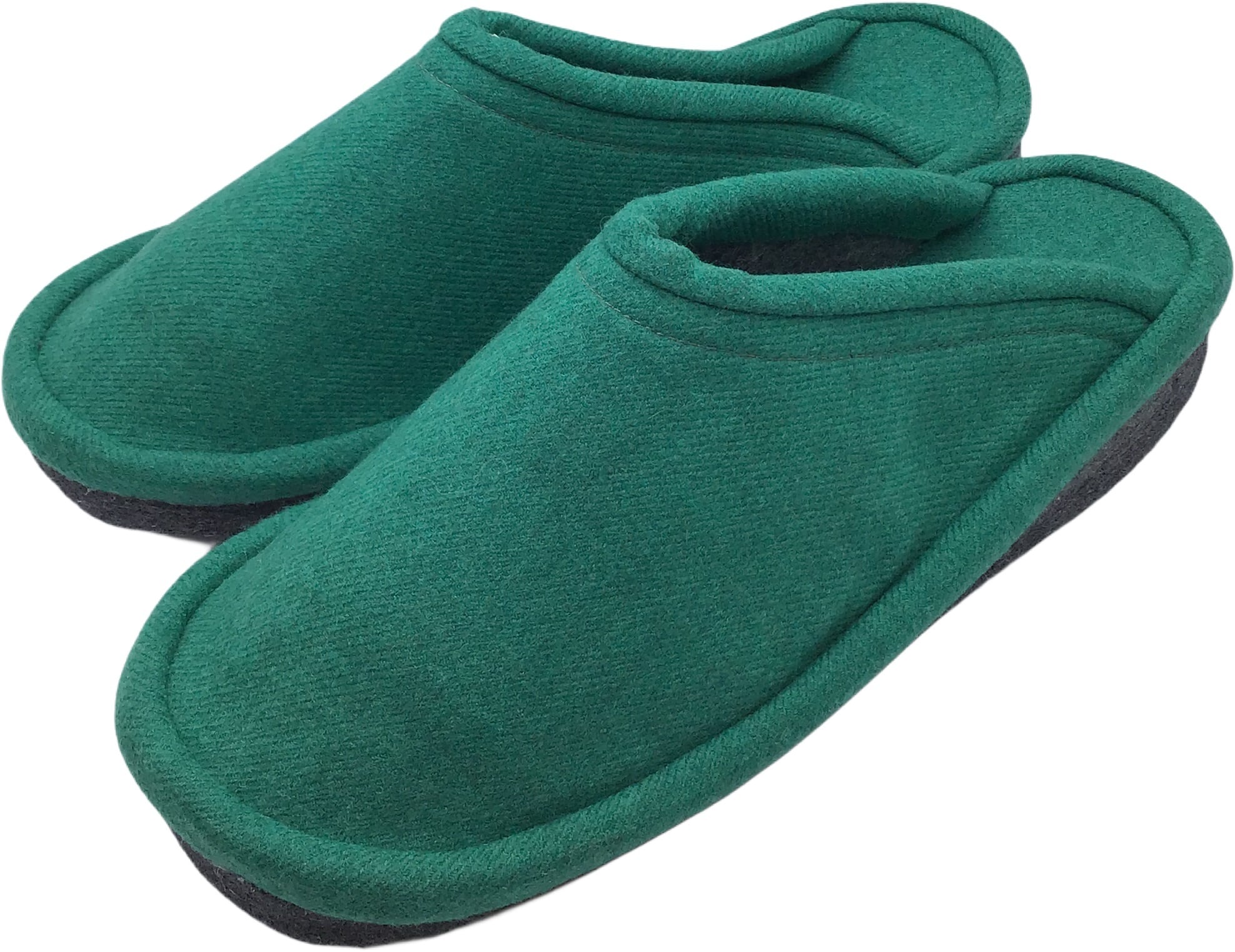 底面は、厚めのフエルトを使用しており、クッション性に富んでいます。また、踵の近くまで生地があるので、足先から踵付近まですっぽりと包まれ、脱げにくいと好評です。