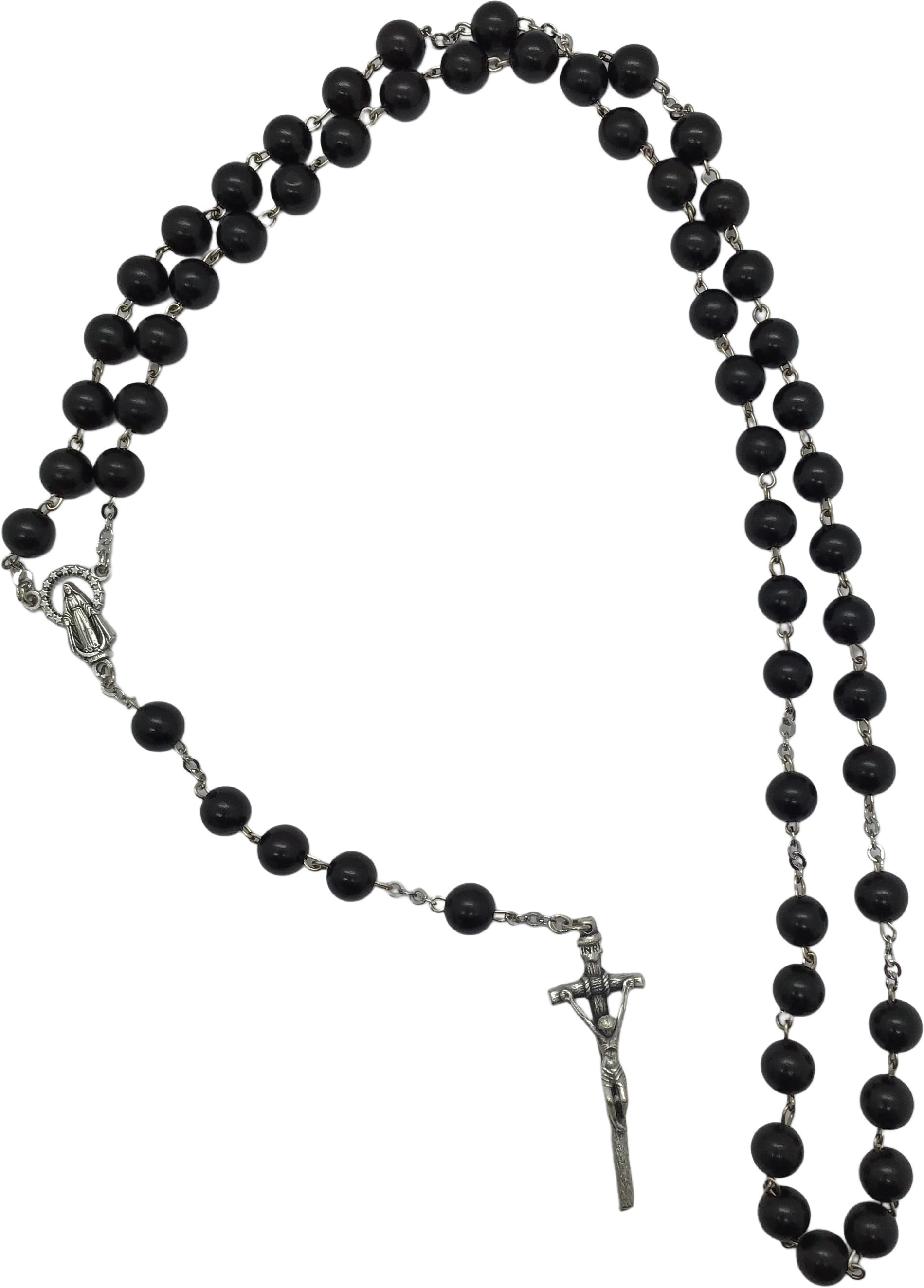 サイズ:全長52cm、円周63cm、珠 0.7cm、十字架5cm×1.5cm