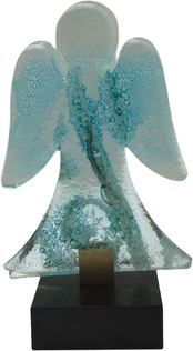 ガラス製 クリアブルーの天使 木製スタンド付き <Engel klar-blau auf Holzstander> Nr.890190/ベネディクト会 マリアラッハ修道院(ドイツ) | サンパオリーノ - 修道院製品のお店