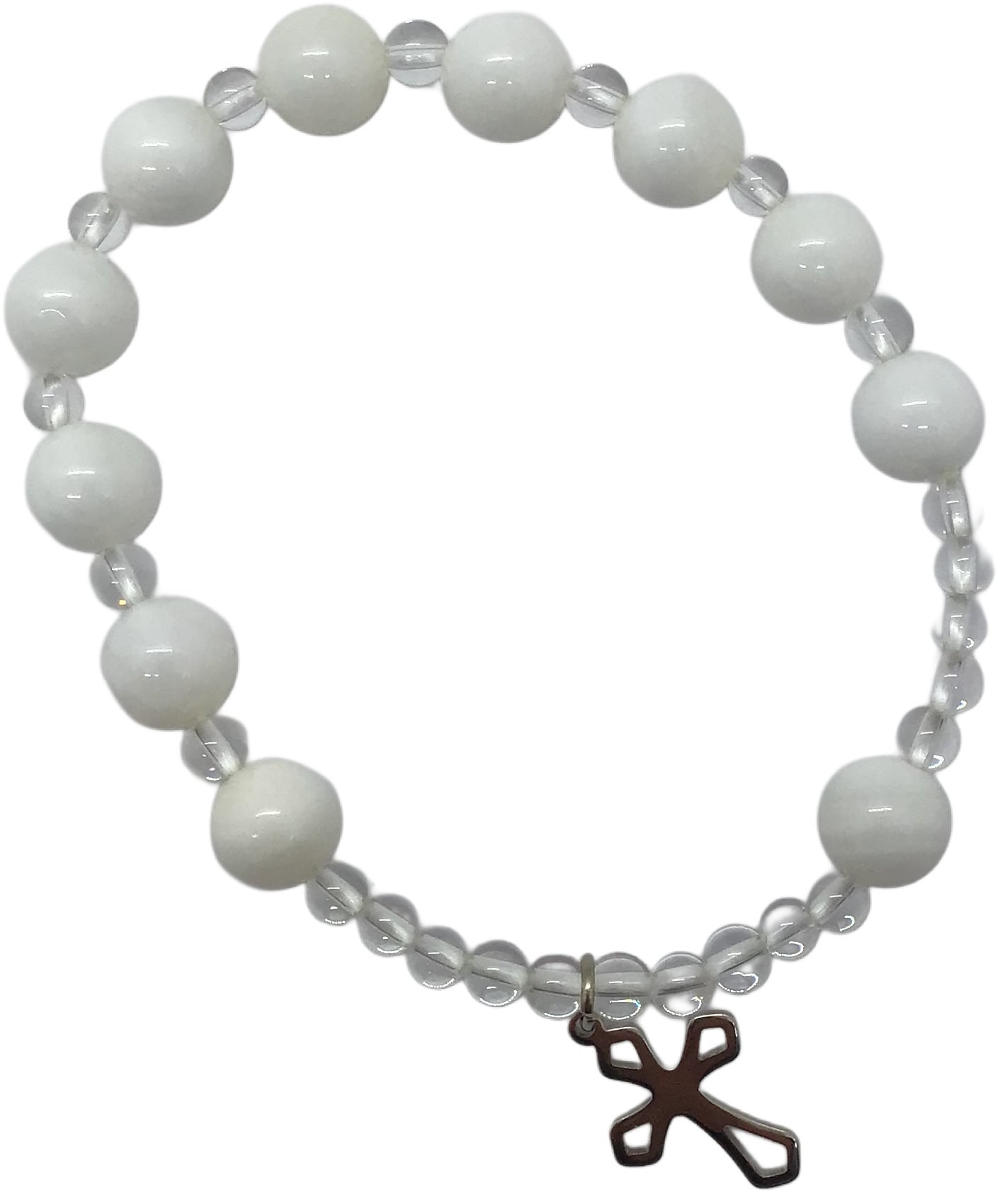 サイズ:内側円周/約16cm(伸縮素材)、珠の直径/大:0.8cm・小0.3cm、十字架/1.5cm×1.1cm