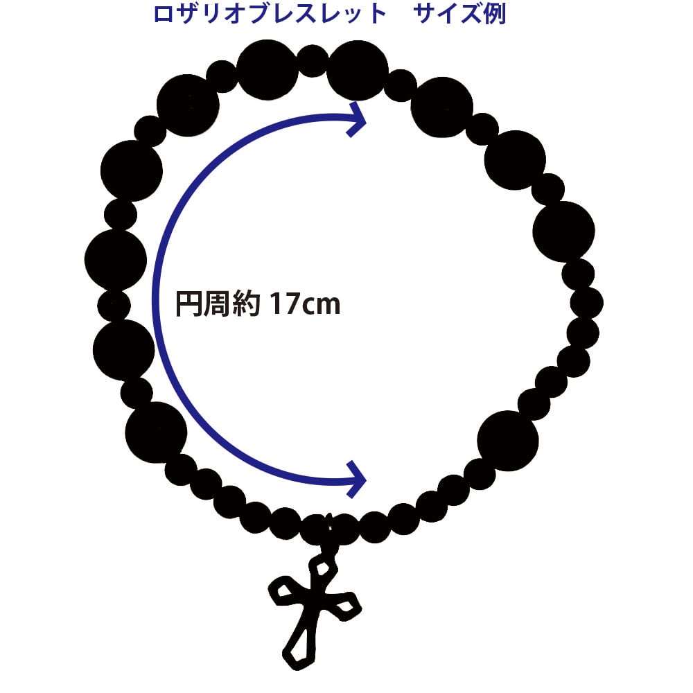サイズ:内側円周/約17cm、珠の直径/大:1cm・小0.7cm、十字架/0.7cm